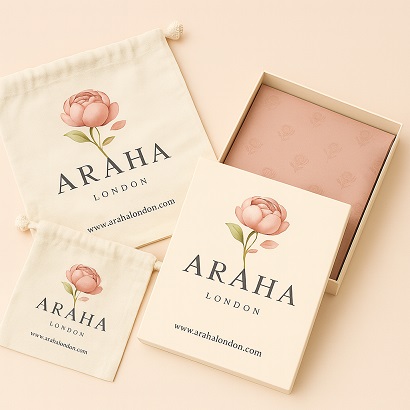 At Araha London, we believe packaging should protect, preserve, and reflect the care behind every piece we create. We are committed to sustainability in everything we do — including how we package our products.