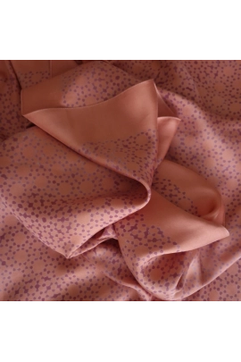 Hand block-printed silk scarf featuring delicate blooming flower, blending bold colour, softness and timeless elegance.